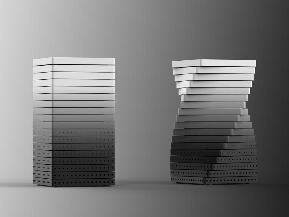 The Alessi product portfolio includes hundreds of designers and architects who all impart their own aesthetic into Alessi's colorful design language. Because of this, I had to identify how to design a product not to look like Alessi, but to FEEL like Alessi. The final design has a monolithic form inspired by Alessi's early architectural influences, a black to white gradation that symbolizes the air entering dirty and leaving clean, and a user interaction that is playful and inviting, but also functional as it visually communicates the fan speed through a change in shape.